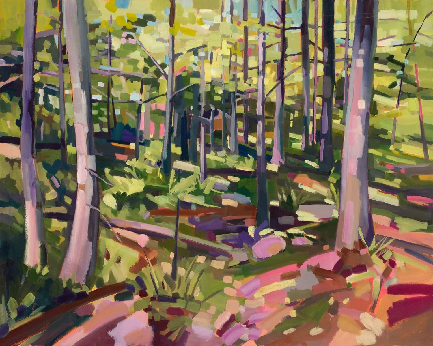 Mallie’s paintings ask for slow looking. She thinks about immersion while she works, about capturing memory and texture rather than exact likeness. Many of her perspectives come from low vantage points: the edge of a field, the subtle shift between mowed and unmowed grass, small glimpses that might otherwise go unnoticed. “I love the idea of the viewer being rewarded for taking time,” she says. “That’s how I experience the landscape.”