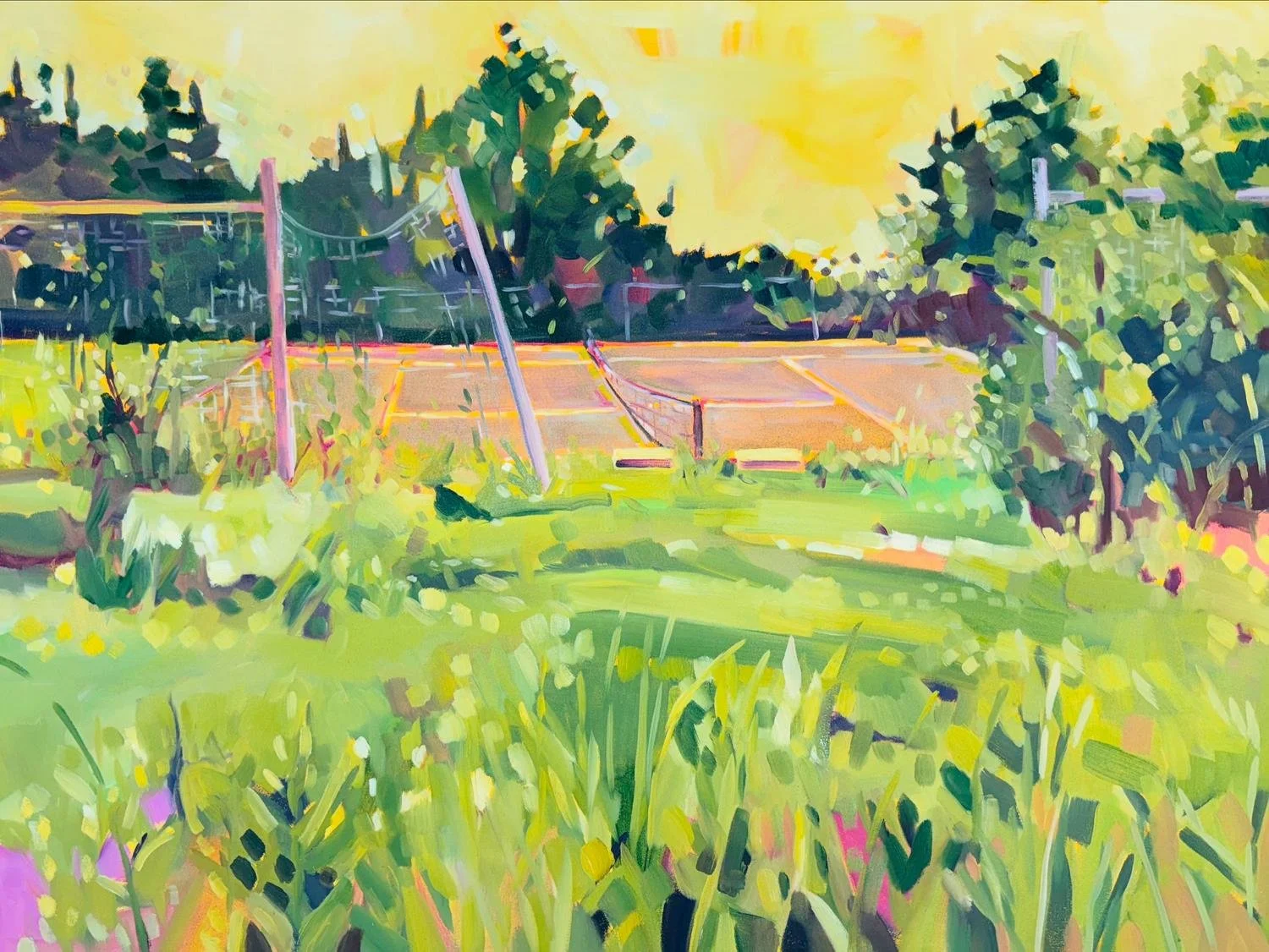 "Nichols Field Tennis Court" 2025 oil on canvas 36” x 48